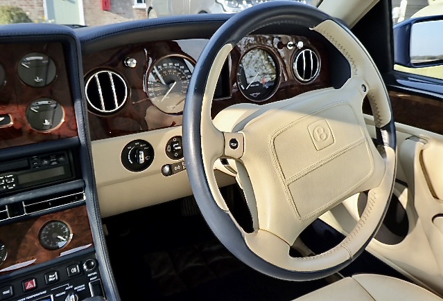 A very rare opportunity to purchase a one owner, ultra low mileage Bentley Continental R. Finished in Peacock Blue, with Magnolia Connolly leather piped in Blue with Dark blue carpets and Dark Blue sheepskin over-rugs. First registered 06/01/97. The car comes with all service books, handbooks, history file and tool kit. This outstanding car has full Bentley service history and has had four recent new tyres, plus new brake pads and accumulators at its last service which was done at 11,434 miles on the 10/02/25, current mileage 11,700 miles. Service history reads as follows…